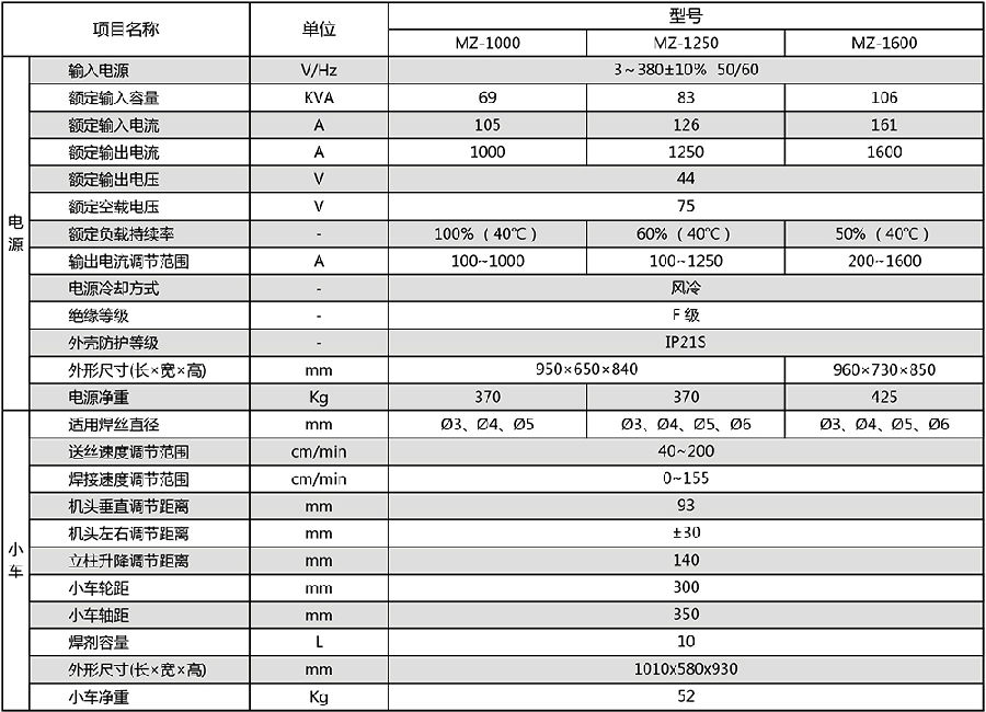 MZ-1000/1250/1600 晶閘管式自動埋弧焊機