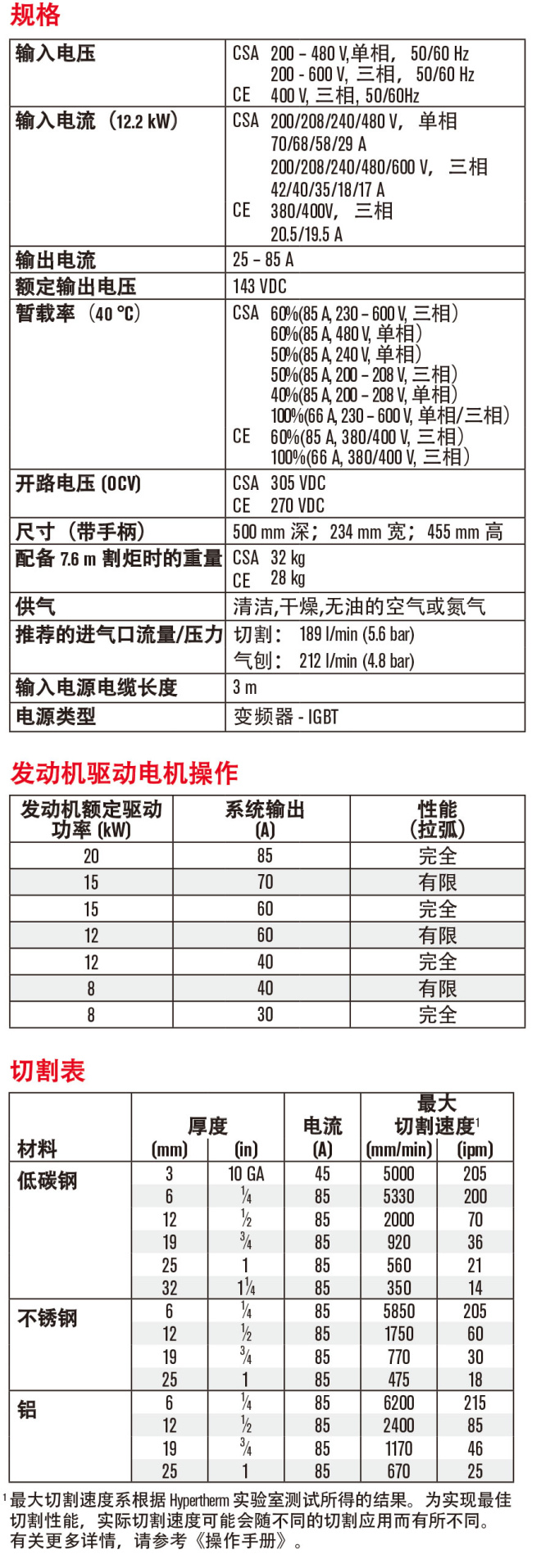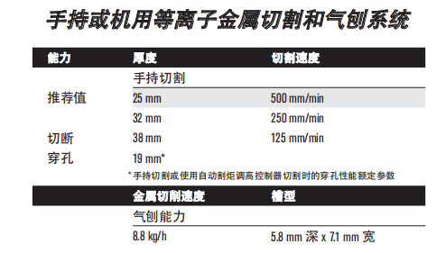 ? 切割速度快:在切割 12 mm 低碳鋼時,切割速度比火焰切割快 150%。 ? 獨特切割和氣刨質(zhì)量,減少了打磨和邊緣處理的時間。