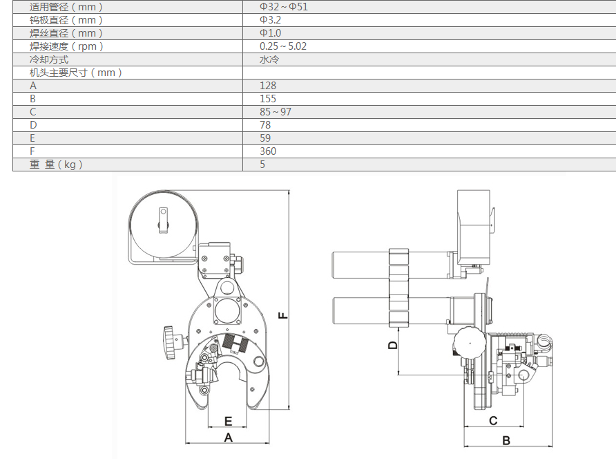 該焊槍是專為管/管G焊接設(shè)計(jì)的專用焊槍,適用于容間距形式的管/管自動化焊接。可焊接碳鋼、不銹鋼等各種管/管對接。管子直徑范圍中φ32~φ51mm,可選擇采用填絲或自熔兩種方式。可自動調(diào)節(jié)弧長、橫擺功能。可與 orbital5000程控焊接電源配套使用,可精密實(shí)現(xiàn)全位置TIG管/管焊接,焊接結(jié)果重現(xiàn)性高,可達(dá)到理想的焊接效果。主要應(yīng)用于化工、食品、鍋爐、軍工和核電等行業(yè)